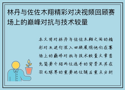 在CBA联赛的激烈竞争中,福建队与广州队的对决为球迷们奉献了一场精彩纷呈的比赛。本文将通过回顾这场比赛中的精彩瞬间,从多个角度深入分析两队的表现。首先,我们将关注比赛前期两队的准备情况和策略布局;其次,详细观察比赛过程中的关键时刻和转折点;然后,我们会探讨球员个人的杰出表现以及他们对球队胜负的重要影响;最后,总结比赛后的反思与展望。这篇文章旨在为读者呈现一幅生动的CBA篮球画卷,让人们更深入地理解...