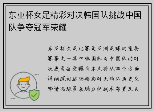 本文将对中国与日本在东亚杯的精彩对决进行全程回顾与分析。通过赛事背景、比赛过程、战术分析和球员表现四个方面,深入探讨这场比赛的重要性及其影响力。东亚杯作为一项重要的区域性足球赛事,不仅是各国球队的一次竞技展示,更是国家荣誉和民族情感的集中体现。在这场中国与日本的较量中,两队展现了高水平的技战术,激烈的竞争氛围以及球迷们热情的支持,为广大观众奉献了一场难忘的足球盛宴。接下来,我们将逐步分析这场比赛中...